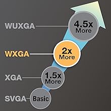 Resolução WXGA (1280 x 800)Oferece 2x mais resolução do que SVGA para apresentações com qualidade HD. |